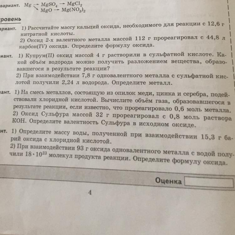 n(CuO) = m(CuO) ÷ M(CuO) = 4÷80 = 0,05 моль