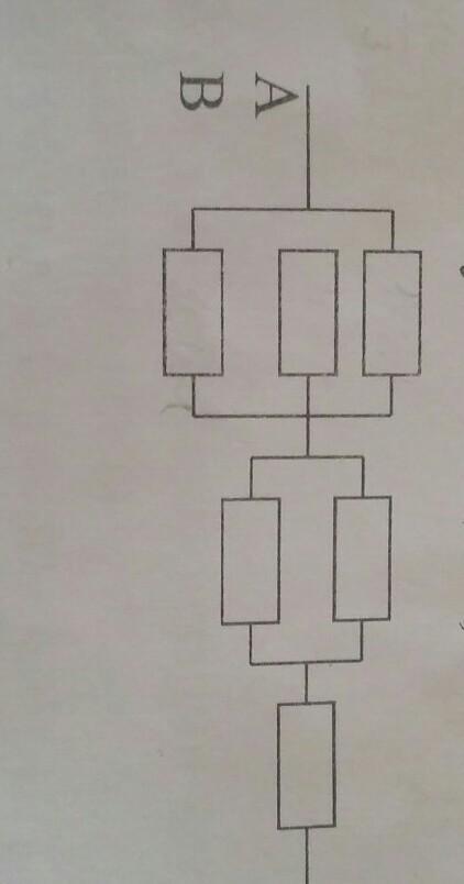 На рисунке изображена схема соединений 6 резисторов сопротивлением по 10 Ом каждый. Определите силу тока в цепи, если напряжение на участке АВ U=20 В.
