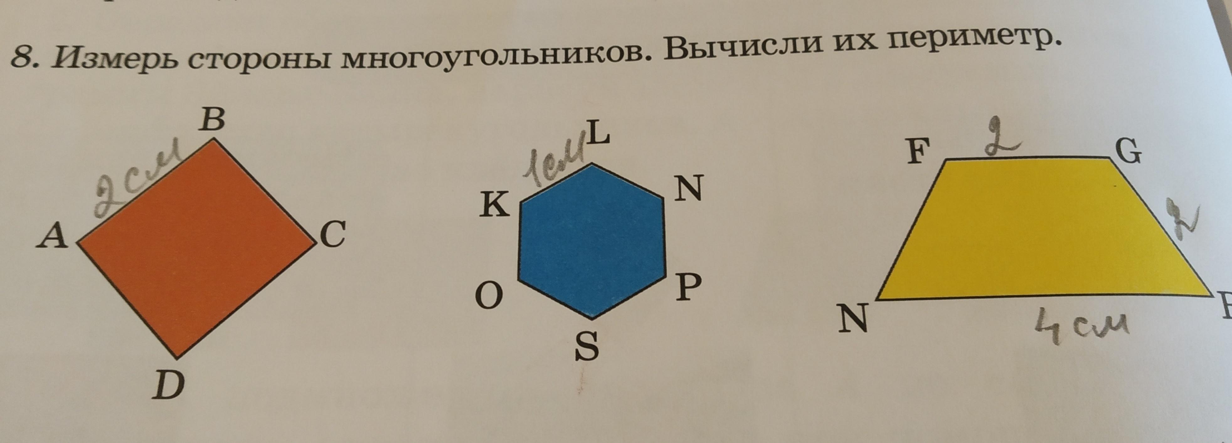 2.Р=1+1+1+1+1+1=6(см)