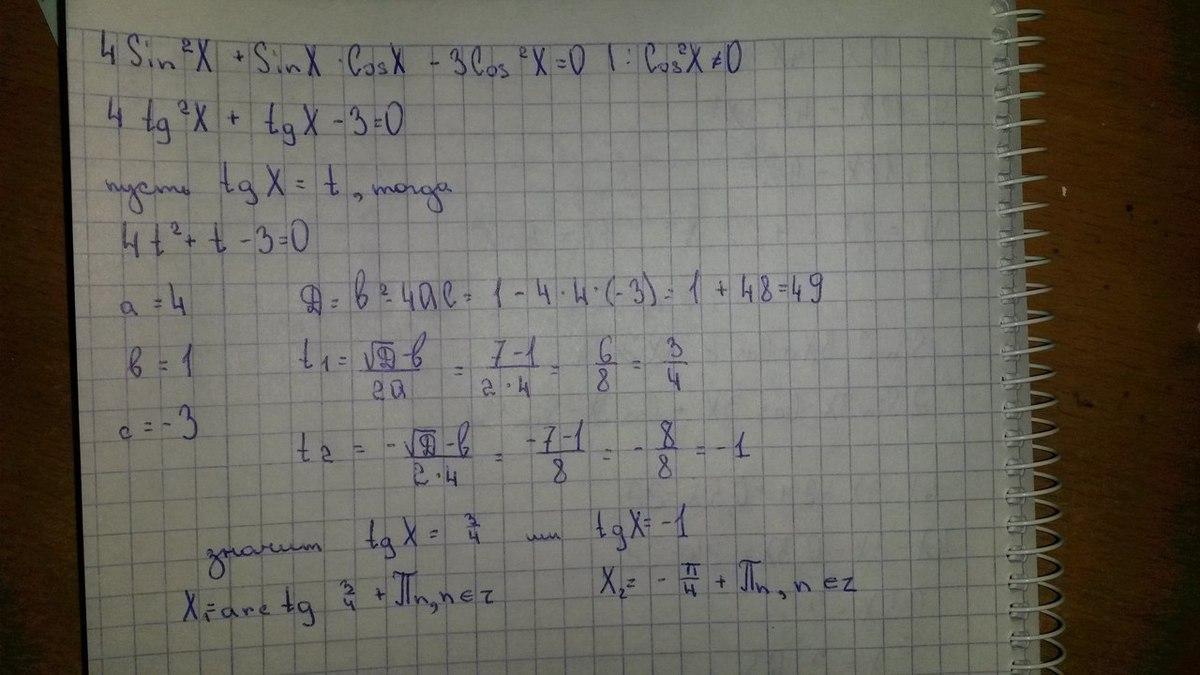 Дано уравнение 4sin^2x cos^2x - sinx cosx = 0.