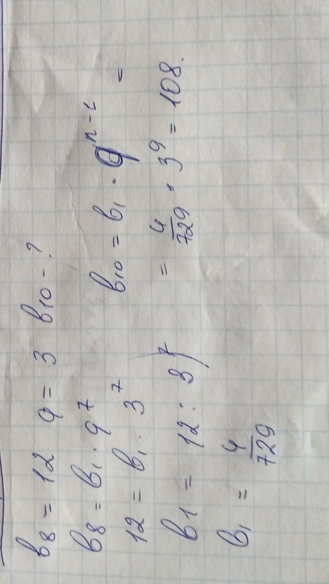 восьмий член геометричної прогресії дорівнює 12, а знаменик 3. Знайдіть її десятий член.