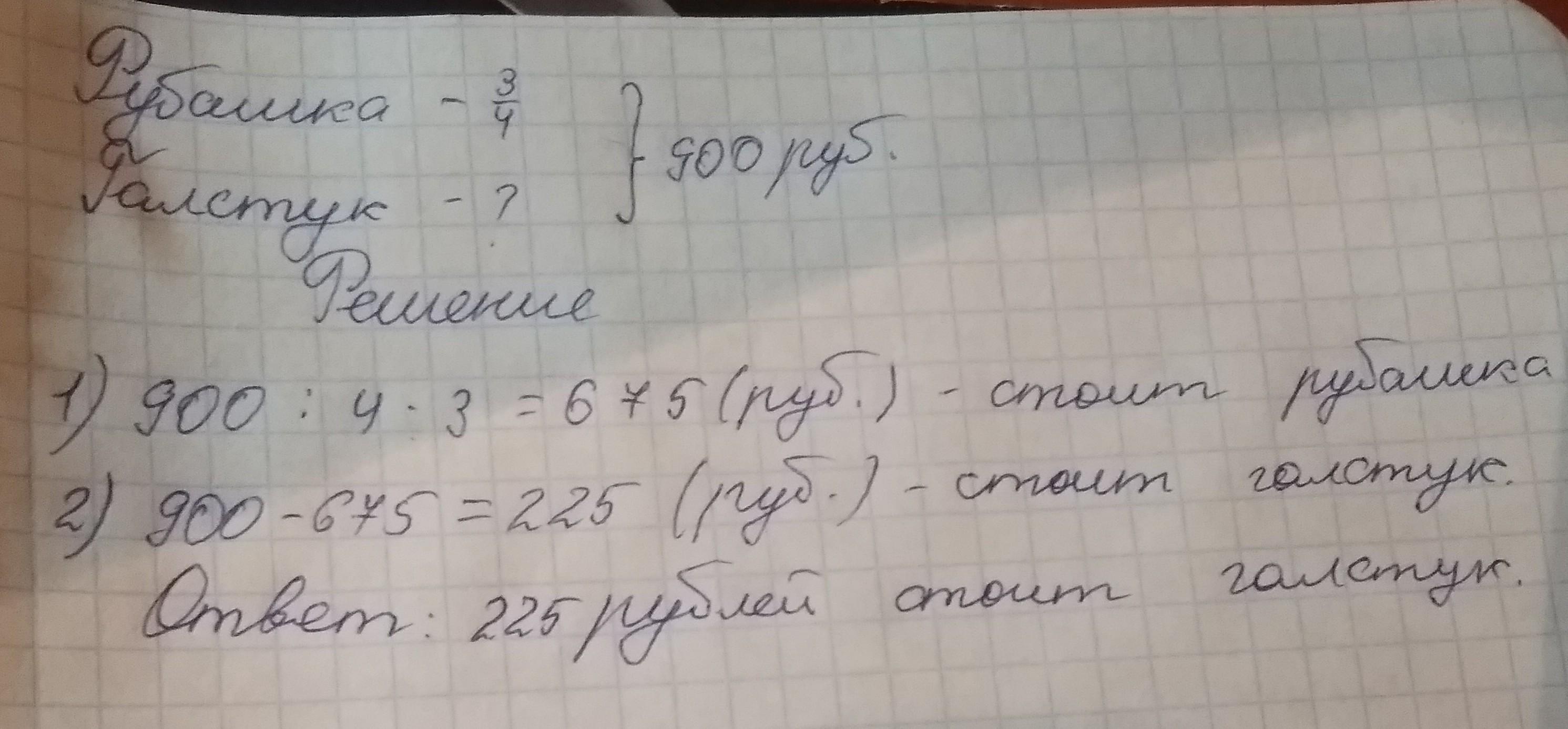 За рубашку и галстук заплатили 900 руб. Рубашка стоит три четвер-