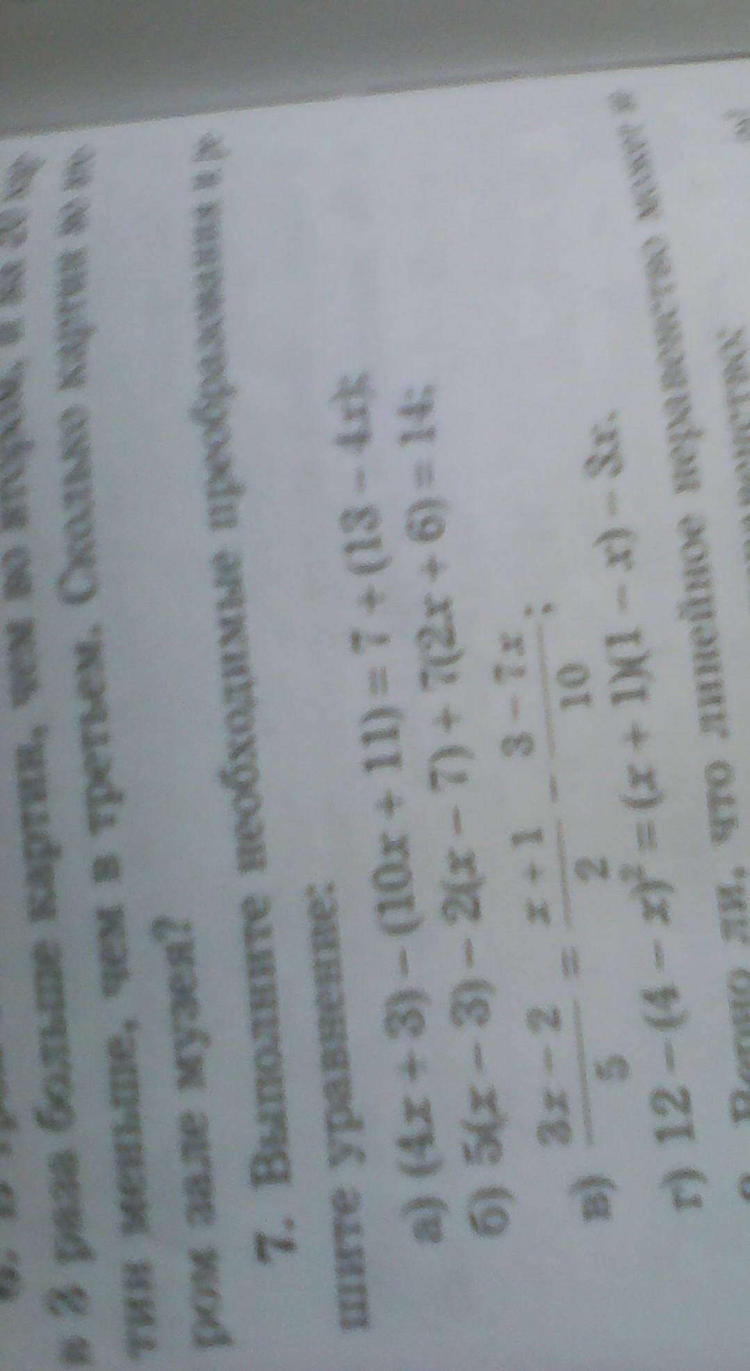 а) (4х+3)-(10х+11)=7+(13-4х)