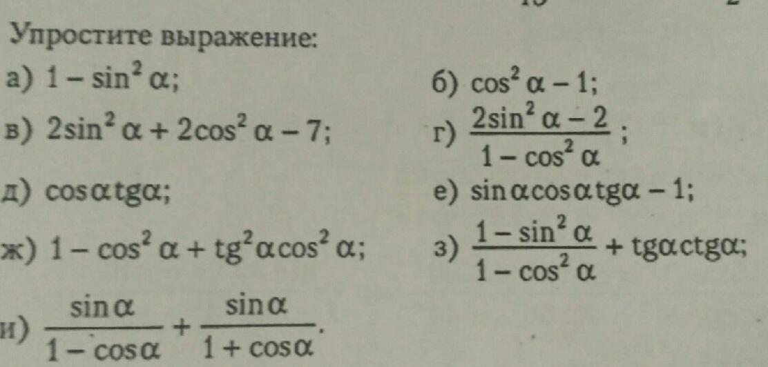 В вариантах г) д) е) з) ж) также используется выражение тангенса и котангенса через синус и косинус