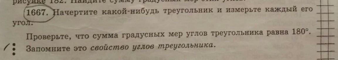 Рисуешь произвольный треугольник берешь транспортир и измеряешь