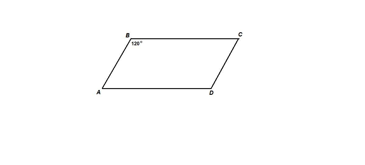 У параллелограмма противоположные углы равны: ∠BCD = ∠ABC = 120°. Зная, что сумма углов четырехугольника равна 360°, получим: