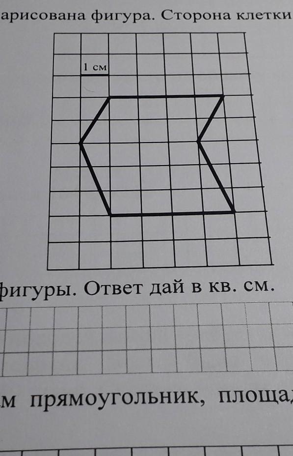 На клетчатой бумаге нарисована фигура. Сторона клетки равна 1 см