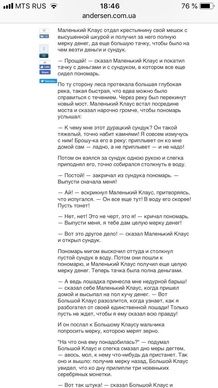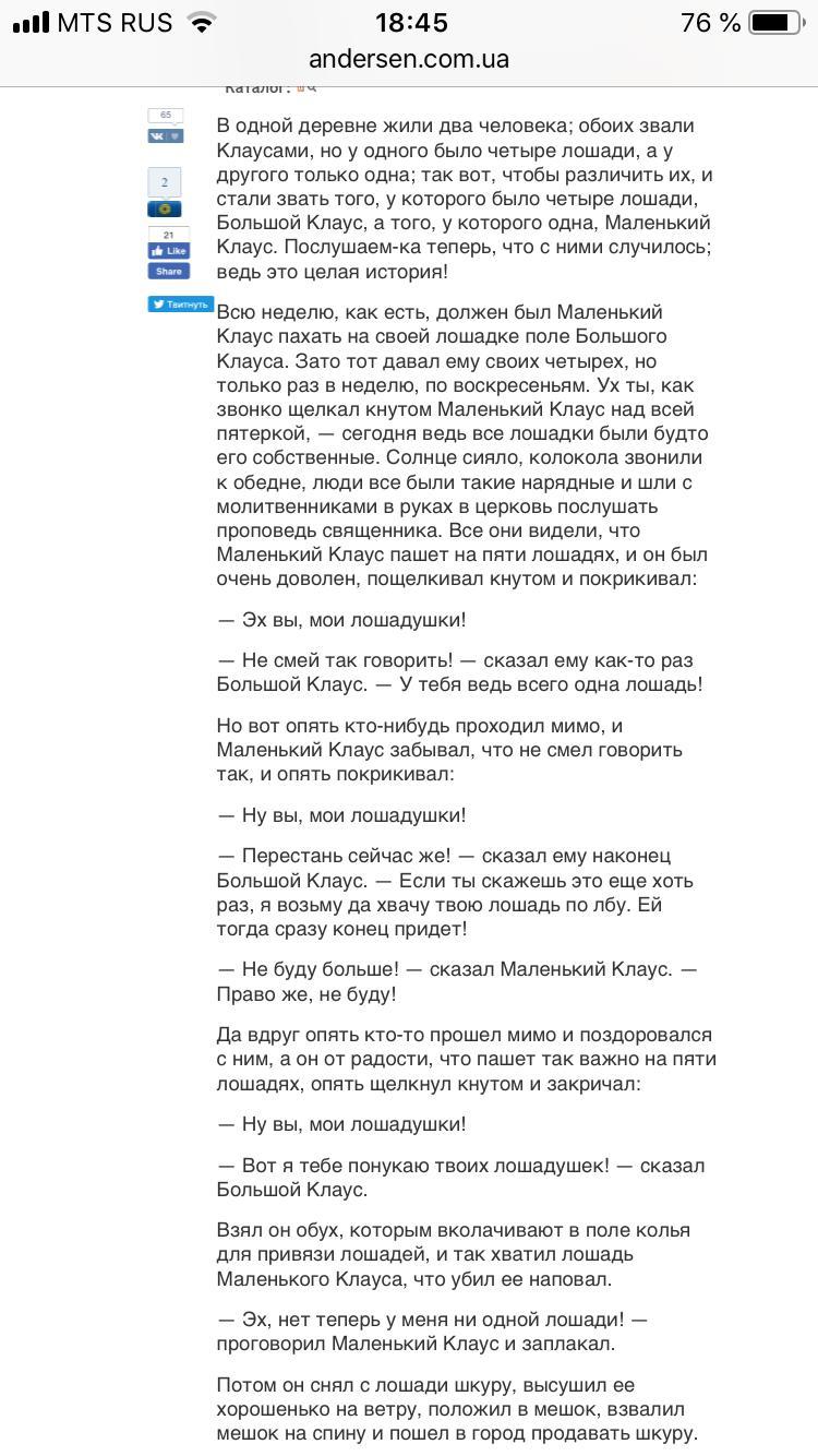 Нужен сжатый пересказ сказки Большой Клаус и Маленький Клаус. Остальные фото во втором вопросе