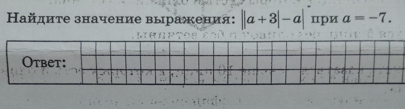 ||а+3|-а| = ||-7+3|-(-7)|= ||-4|+7|= |4+7|=11