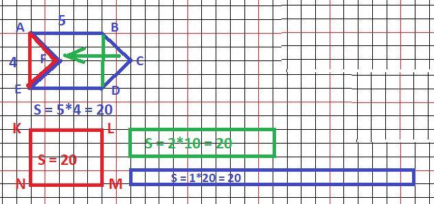 Ответ:площадь равна 4*5=20 см кв