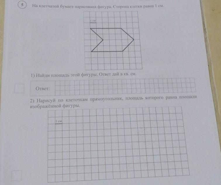 2) Нарисуй по клеточкам прямоугольник площадь которого равна площади изображённой фигуры.