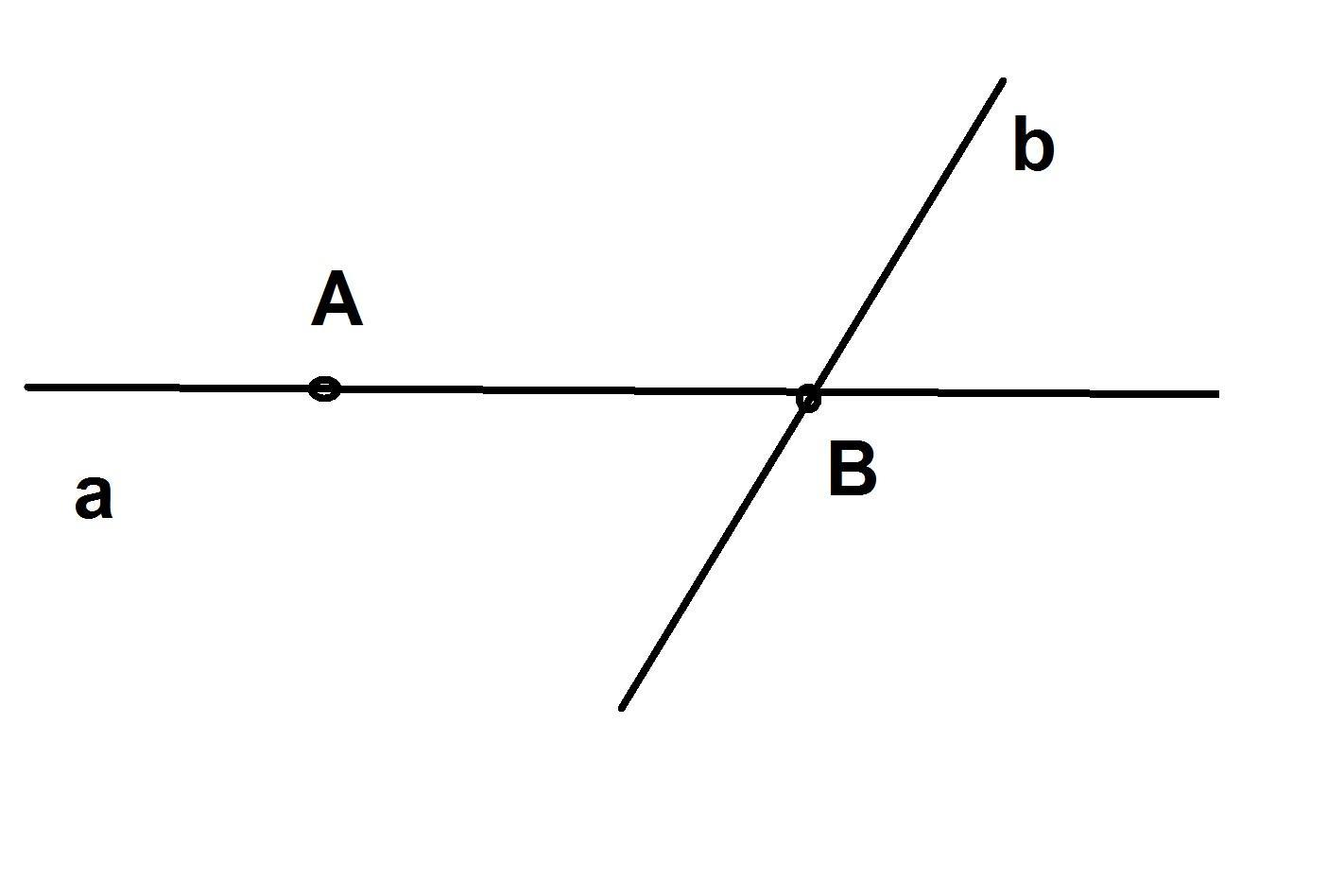 Точка А принадлежит прямой а и не принадлежит прямой b которая пересекает прямую а в точке B