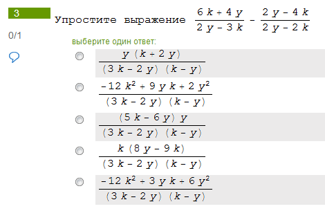 4) решаем в числителе (-12k^2+2y^2+9ky)/((y-k)*(2e-3k))