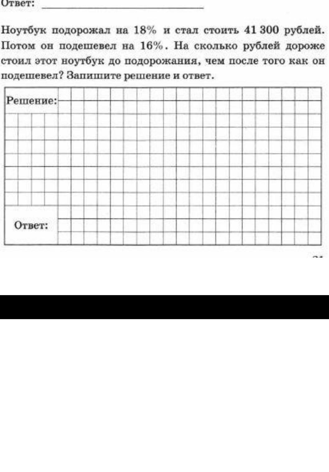 2)41300:100×(100-16)=35518(руб.)- стоил ноутбук после подешевения