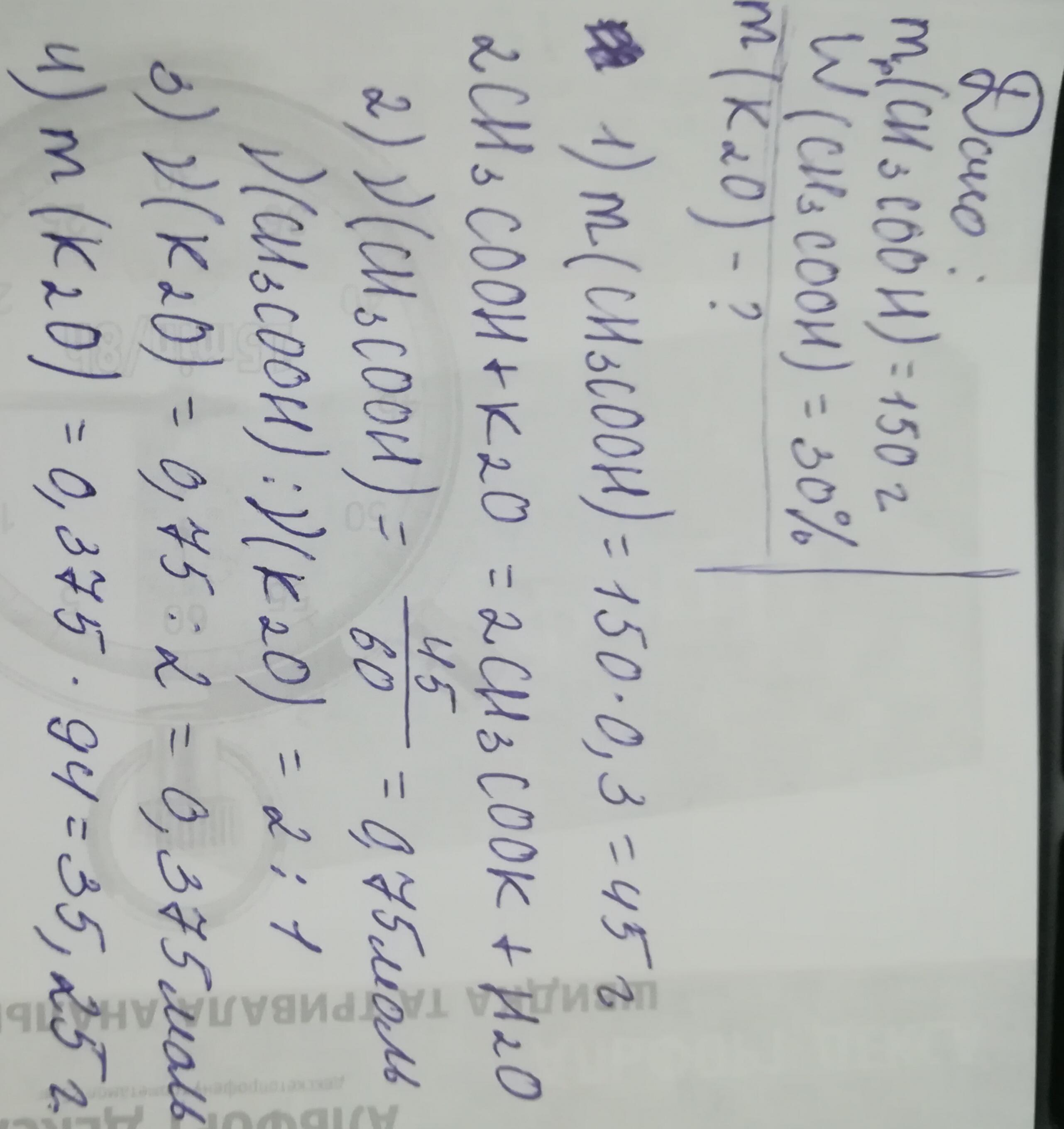 150г оцтової кислоти з масовою часткою 30% прорегувала з оксидом калію. Яка маса оксиду калію?
