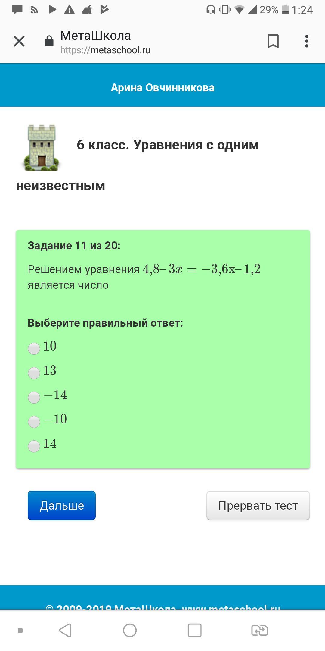 Ответ: -10