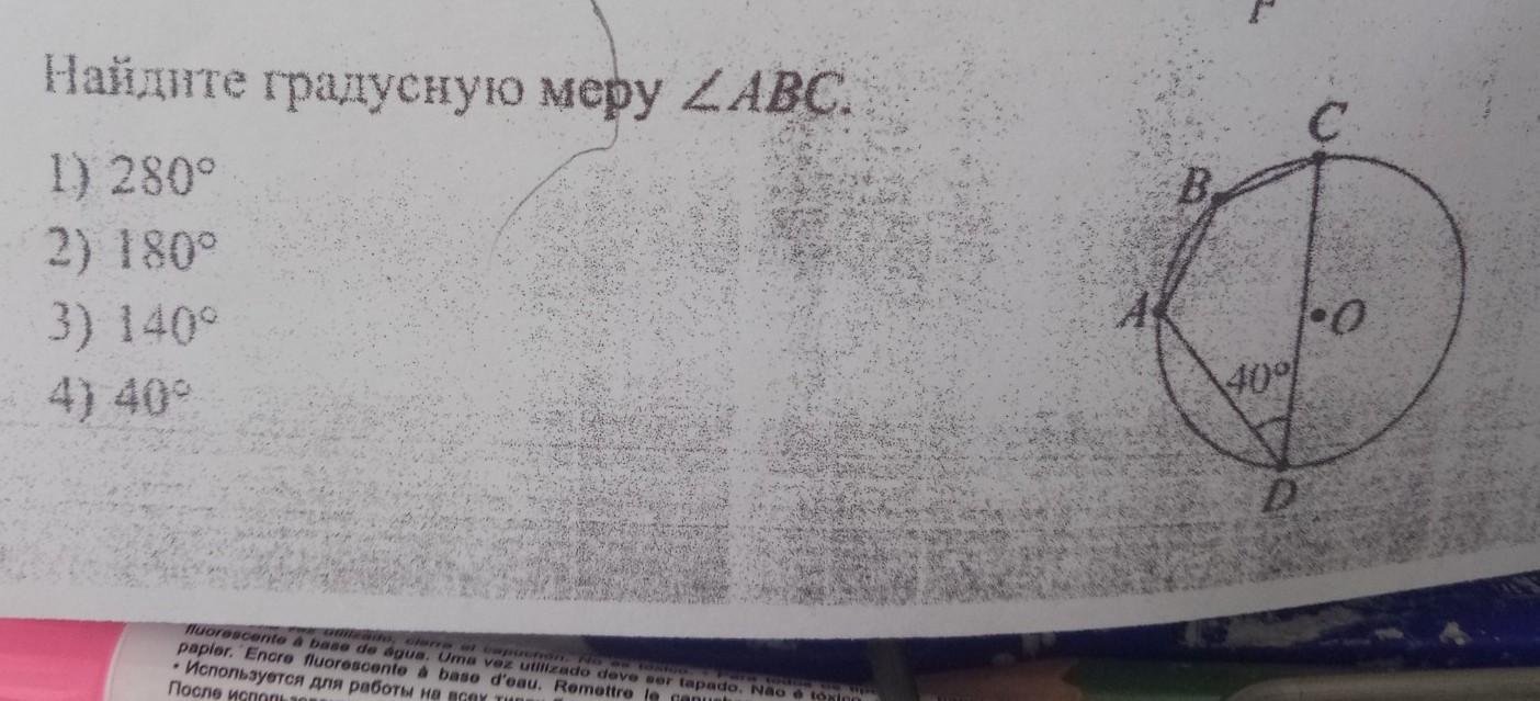 ∠ ABC опирается на дугу ABC => Дуга равна 80°, тогда дуга ADC =360-80=280° => ∠ABC=280/2=140°