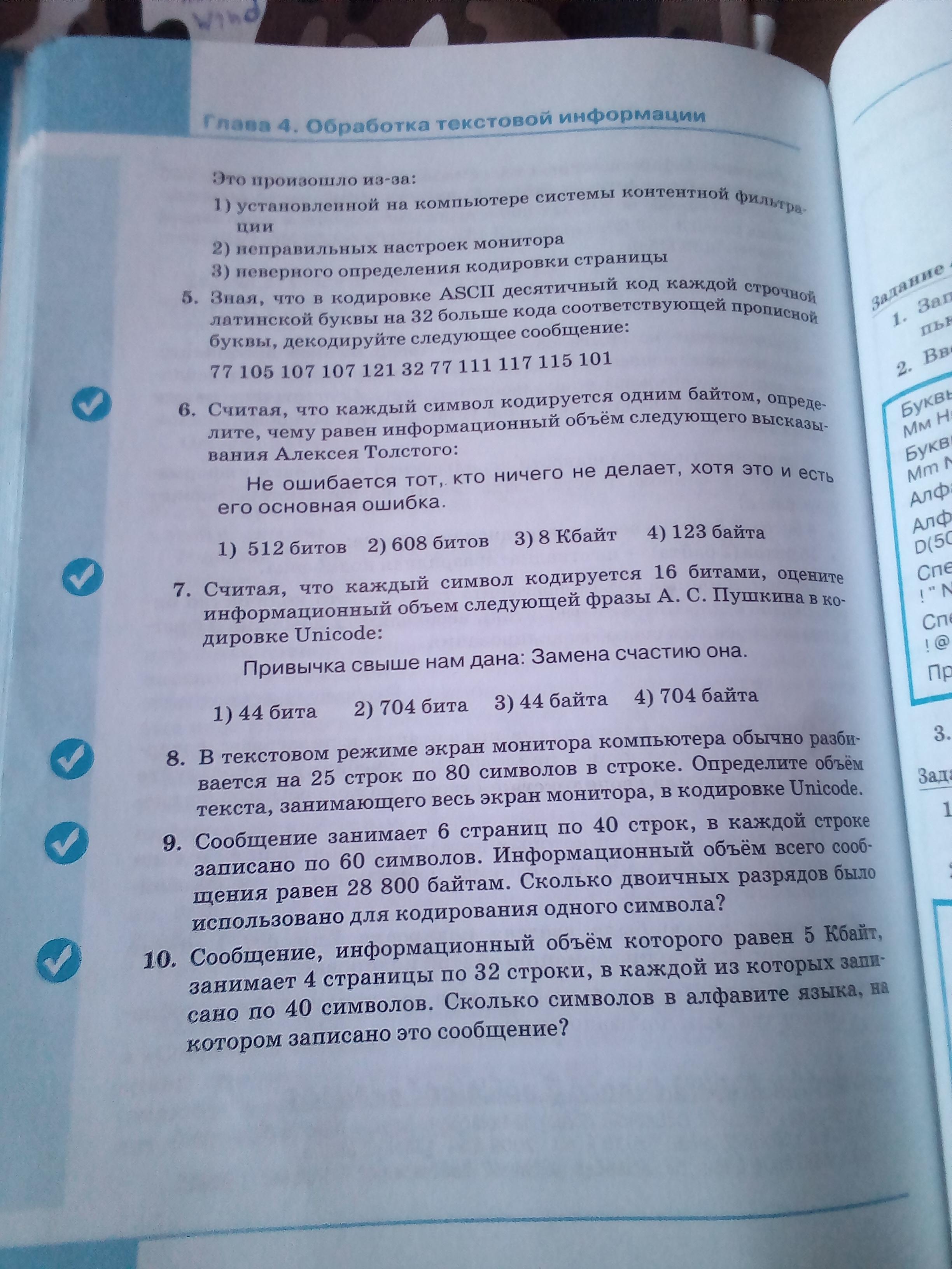 8) В кодировке UNICODE 1 символ = 16 бит = 2 байт