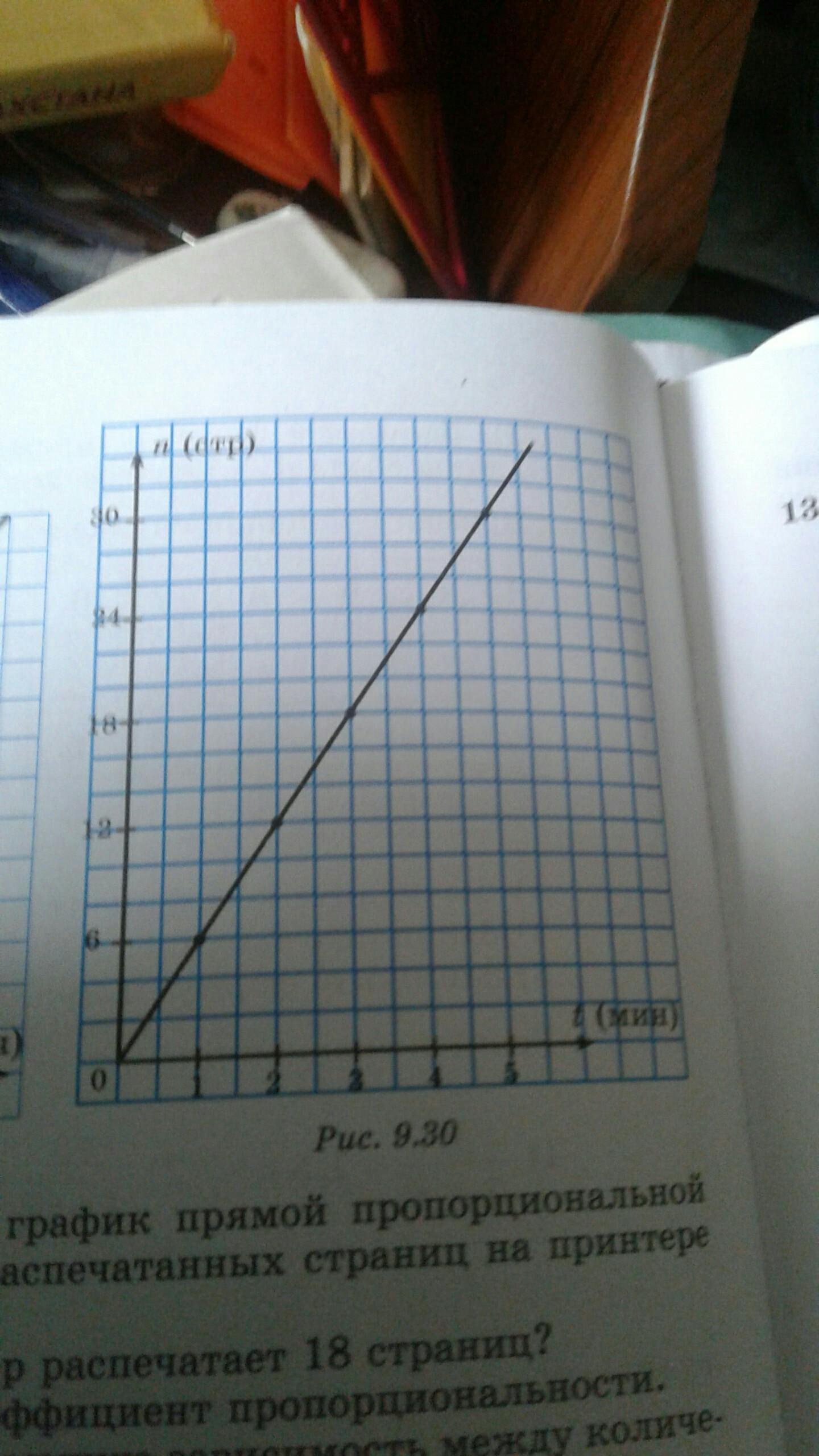 даю 33 балла!!!!!!! На рисунке 9.30 изображен график прямой пропорциональной зависимости количества распечатанных страниц на принтере от времени распечатки