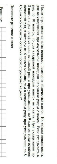 при укладывании по 9 в неполном ряду на 6 плиток меньше чем в неполном при укладывании по 8 - значит это 1 плитка.