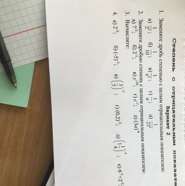 1 а) 2^-5; б) 10^-1; в) х^-6; г) а^-1; д) 23^-4