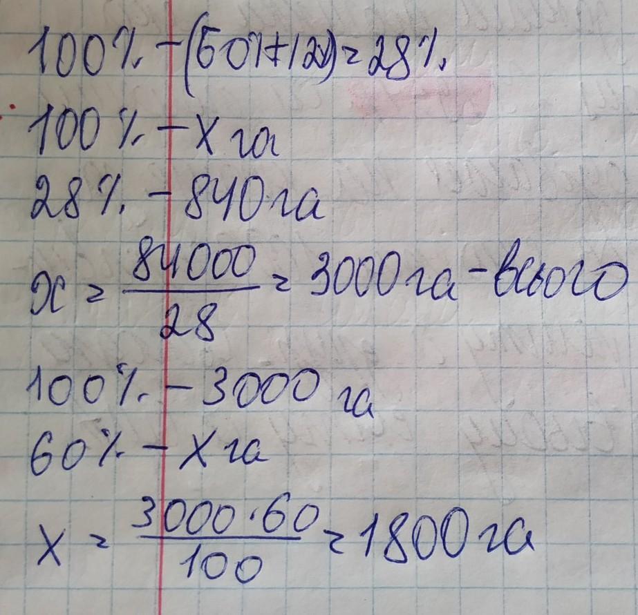 фермер використав 60% всієї землі під озимину , 12% - під кукурудзу , а інші 840 га - під інші культури. скільки землі було використано під озимину?