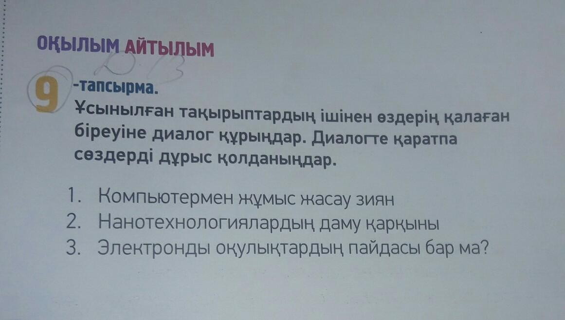 "Компьютермен жұмыс жасау зиян" тақырыбында диалог.