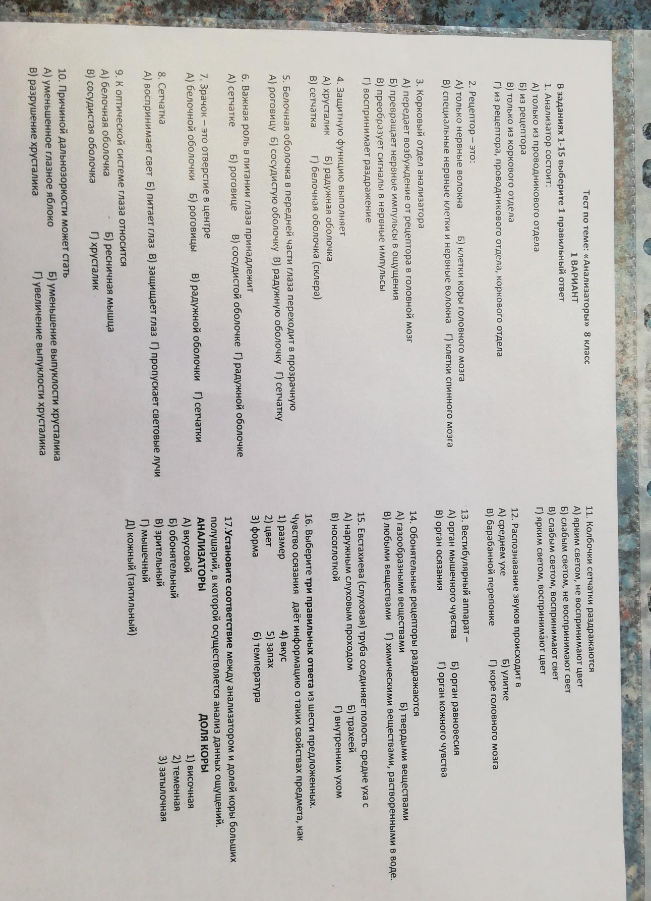 1. - Г) Анализатор состоит из 3-х отделов: периферического (рецептор), проводникового (нервные волокна) и центрального (участок коры больших полушарий).
