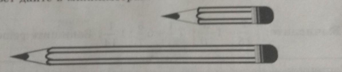 На рисунке изображены два карандаша. Длина длинного карандаша равна 18 см. Найдите примерную длину короткого карандаша. Ответ дайте в миллиметрах.