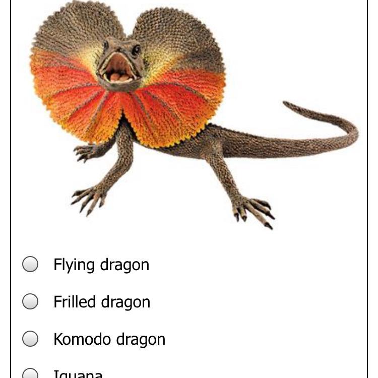 По-русски этот вид ящерицы называется "плащеносная ящерица". В вашем задании ответ будет 2 вариант: Frilled draqon,frilled переводится как украшенный оборками.