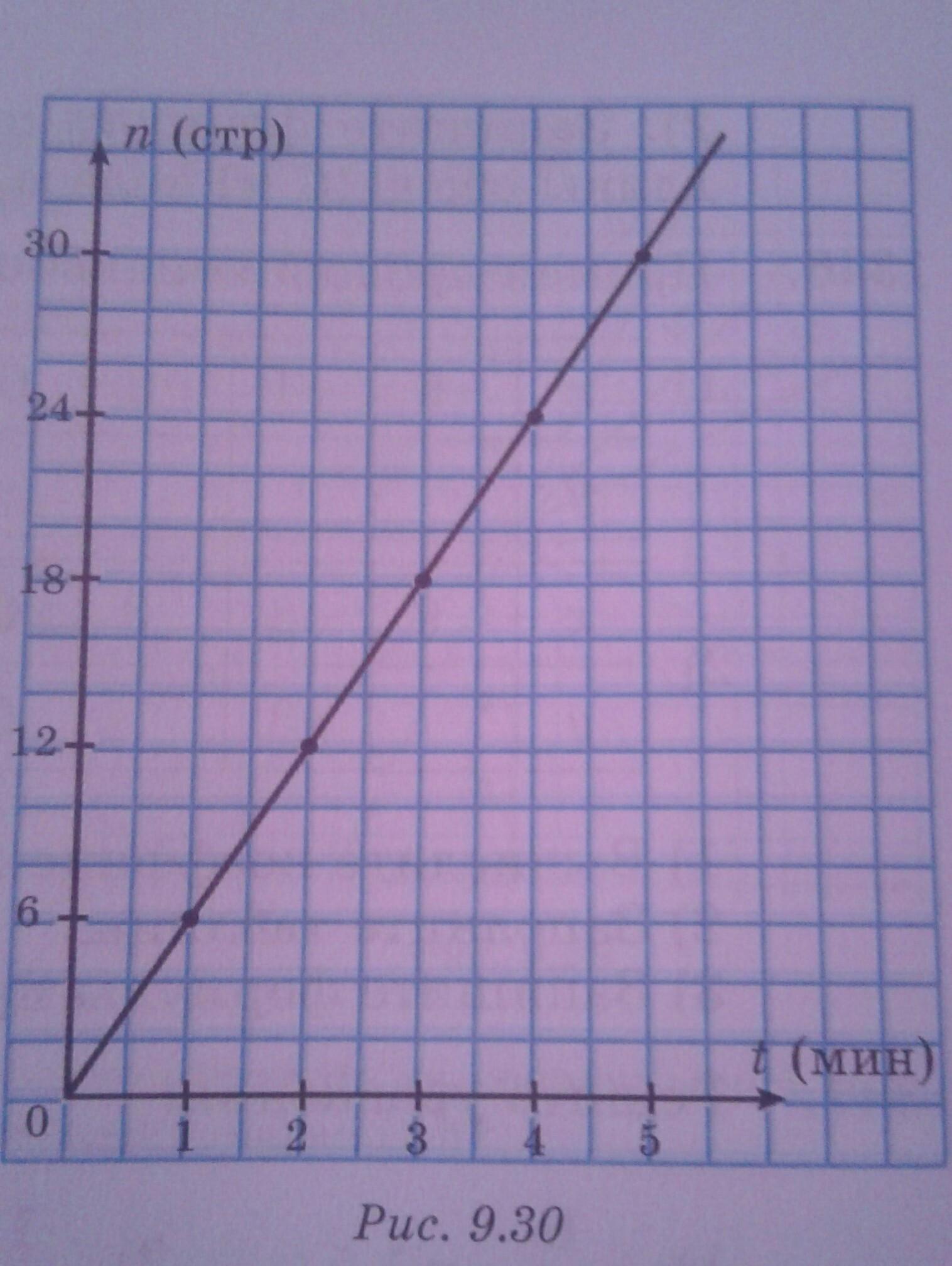 на рисунке 9.30 изображен график прямой пропорциональной зависимости количества (n) распечатаных страниц на принтере от времени (t) распечатки. 1)за сколько времени принтер распечатает 18 страниц? 2) по графику определите коэффициент пропорциональности. 3) запишите формулу, описывающую зависимость между количеством (n) напечатанных страниц и временем (t) распечатки.
