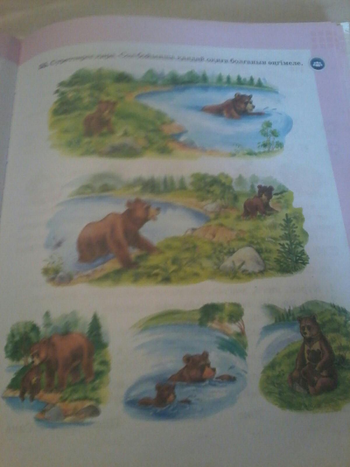 Қоңыр аю қонжығын алып орман шетіндегі көлшікке келіп суға түсті.Қонжық судан қорқып қаша жөнелді.Қоңыр аю қашқан қонжығын ұстап алып,тістеп әкеліп суға түсіріп жіберді.Қонжық алғашқыда қорыққанымен суға үйренді.Аю анасымен екеуі көлде біраз шомылды.Шомылып болған соң жағаға шыққан қонжық аю анасының құшағына кіріп демалды.Бүгінгі күн қонжық үшін көлмен,сумен танысу күні болды.