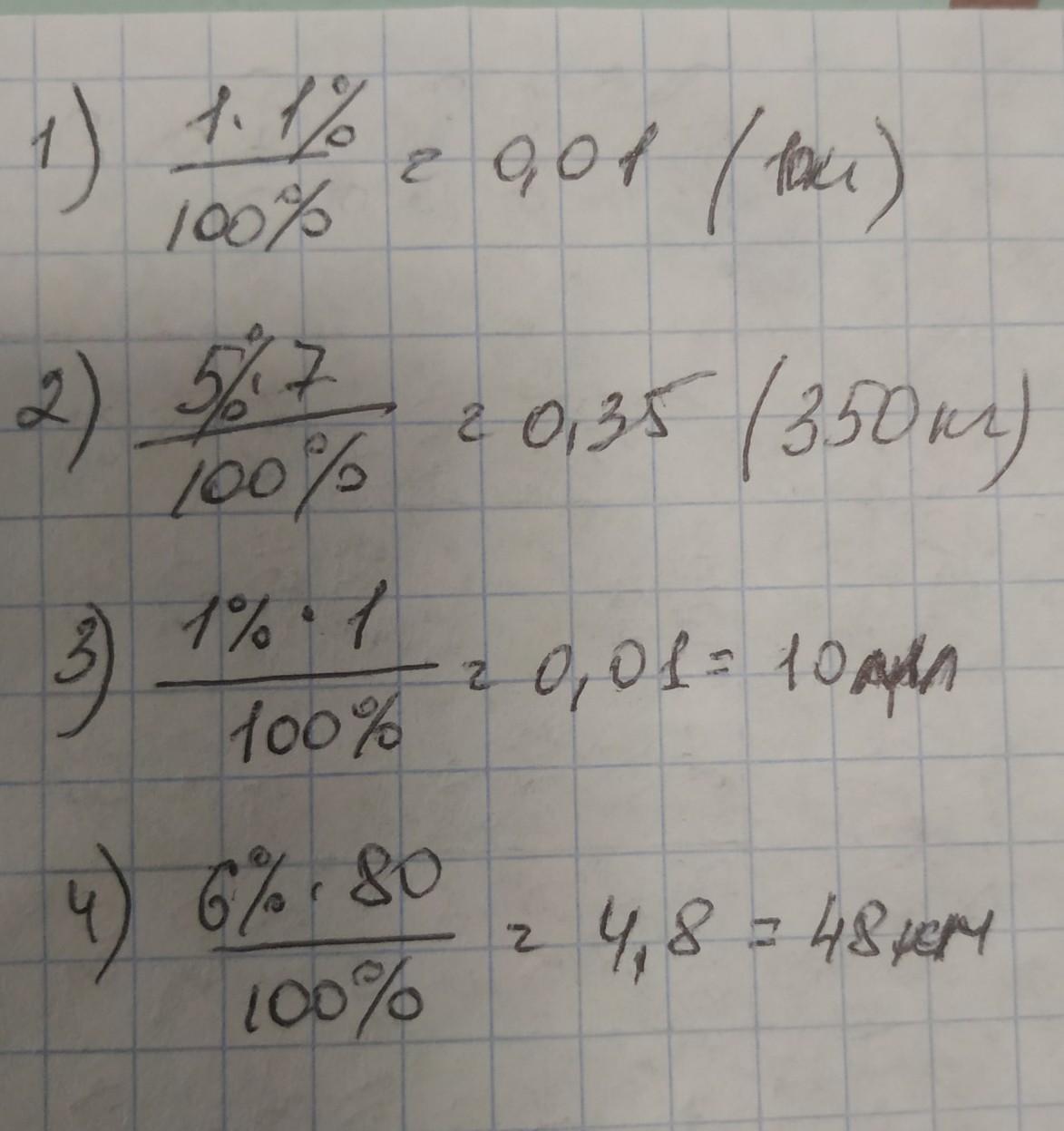 б) 1% от литра; г) 6% от 80 километров.