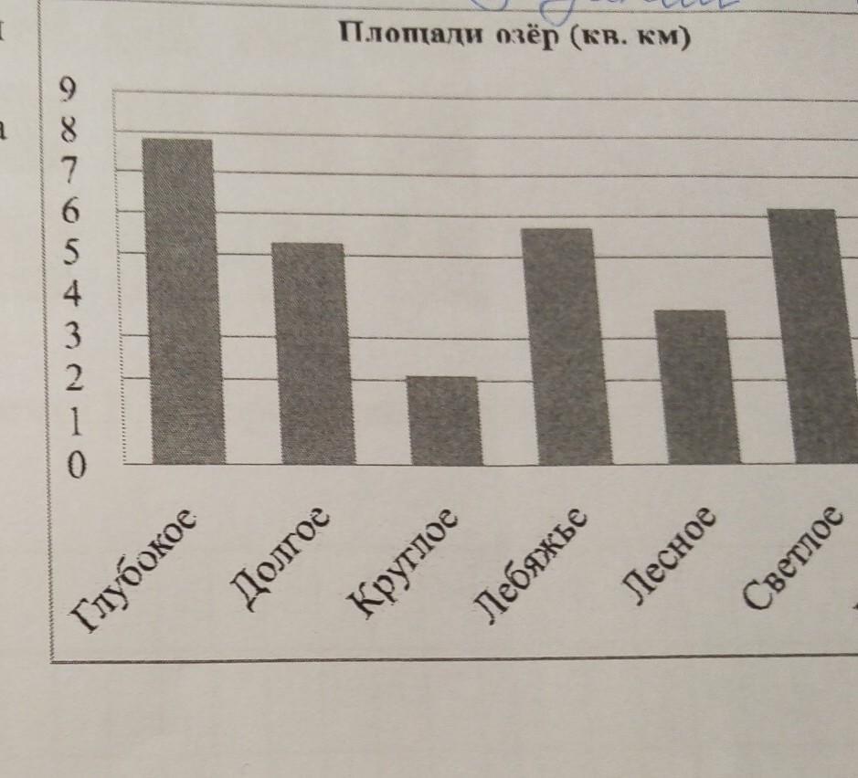 помогите пожалуйста! какое озеро занимает третье место по величине площади среди представленных на диаграмме?