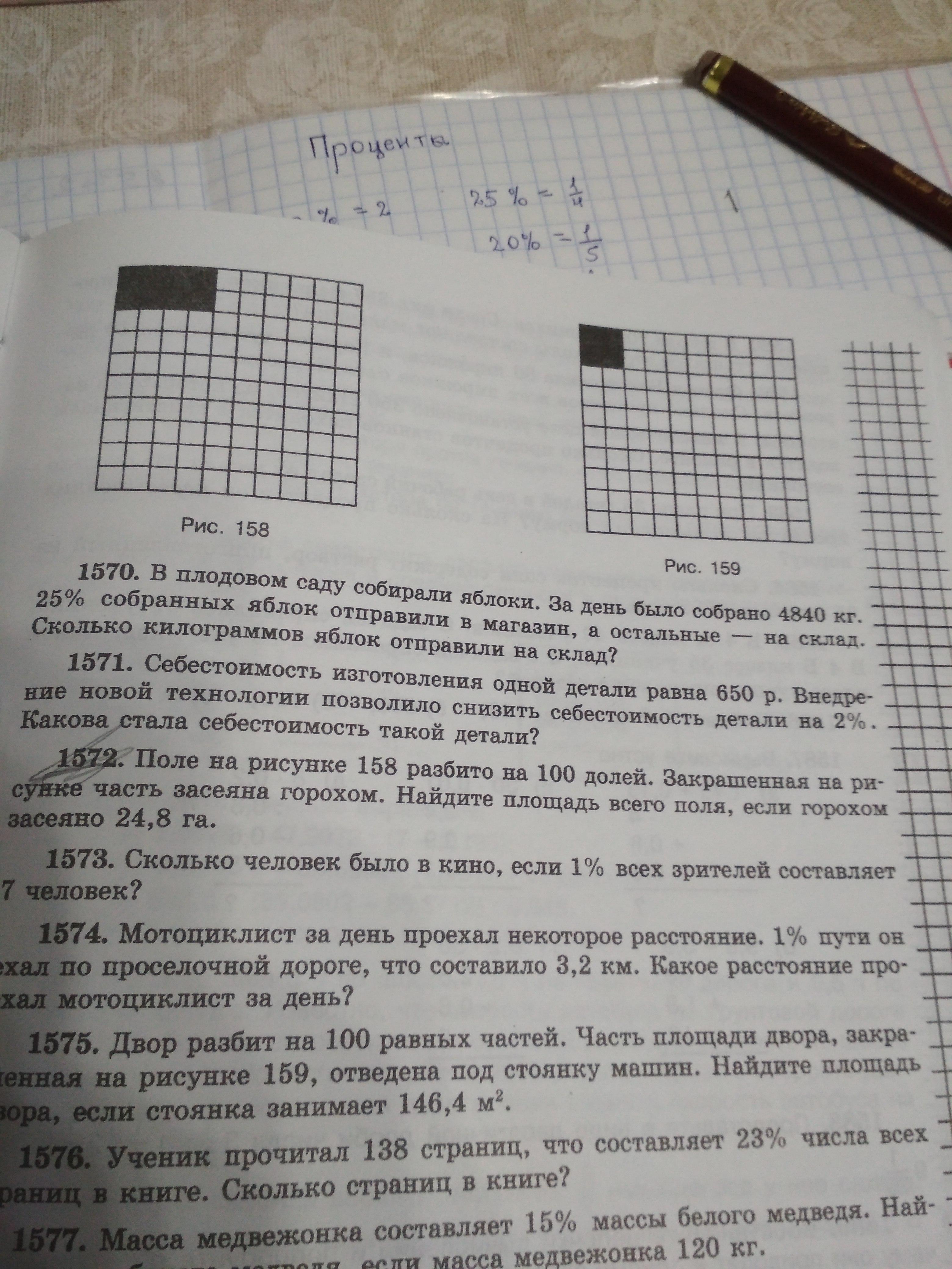 Мы знаем площадь большого квадрата 100 долей (клеток)