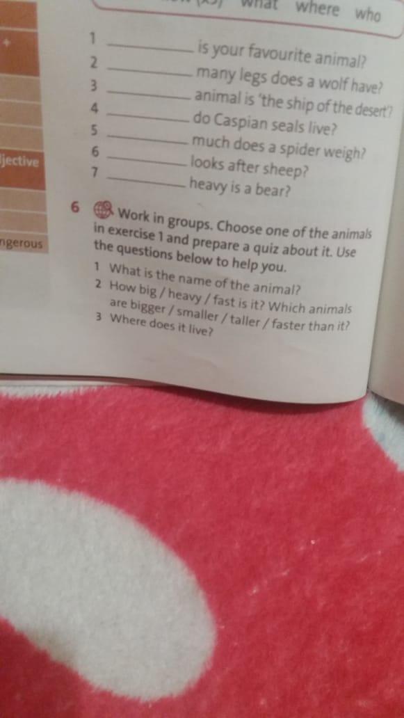 Нужно выбрать какое-либо животное из упражнения 1 и использую вопросы, рассказать об этом животном.