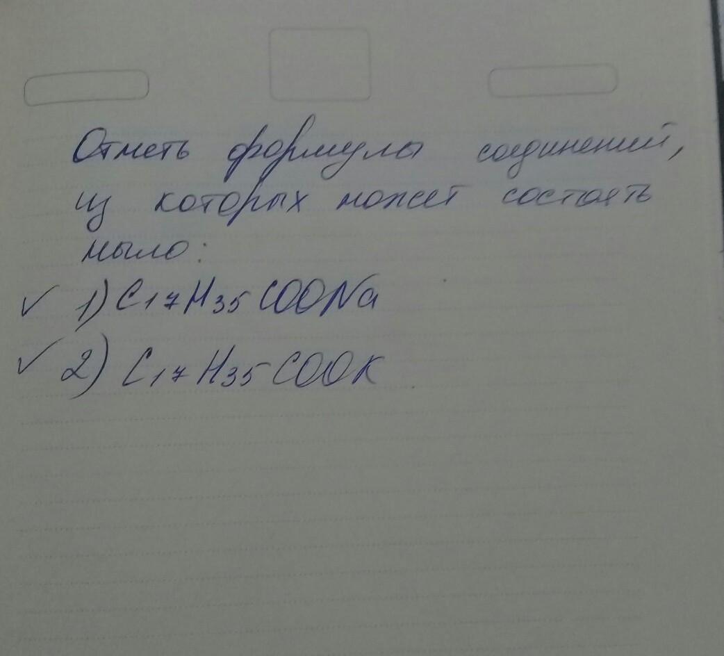 Отметь формулы соединений, из которых может состоять мыло: 1)C17H35COONa