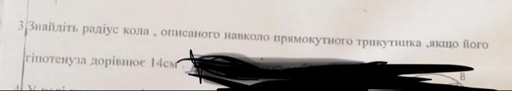 Центр кола лежить на середині гіпотенузи, звідси R = 14/2 = 7 см.