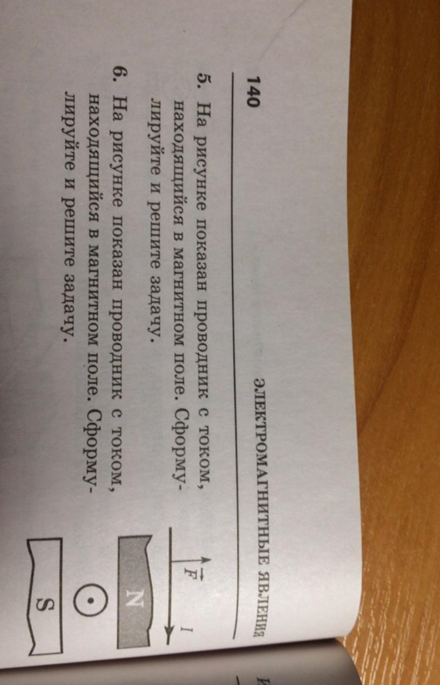 5) Определить направление линий индукции магнитного поля для указанных на рисунке направления тока в проводнике и силы, действующей на проводник.