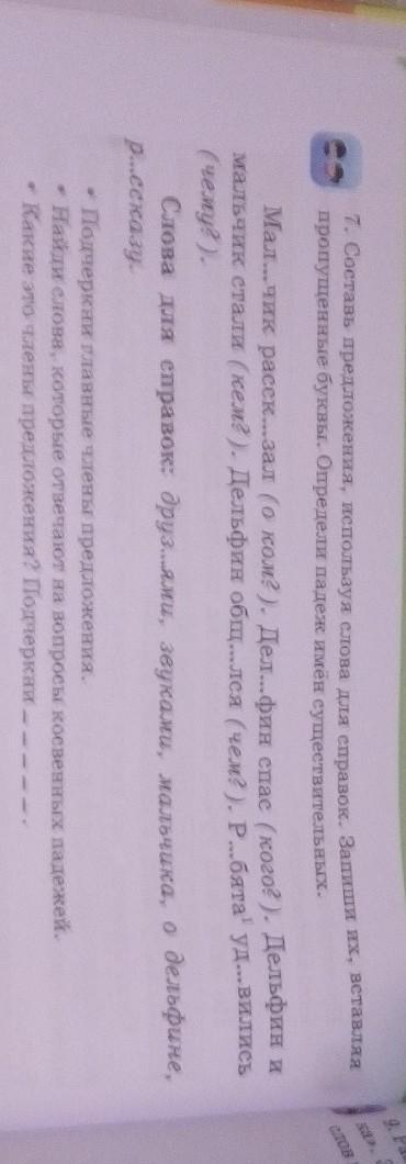 Помогите с нижними заданиями номер семь это подчеркни главные члены предложения. Найди слова которые отвечают на вопросы косвенных падежей. Какие это члены предложения подчеркни _ _ _ _ _ _