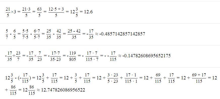 21/5*3-(5/7-6/5):23/7=12 3/5-(-17/35):23/7=12 3/5-(-17/35):23/7=12 3/5-(-17/155)=12 86/115~12.747826086956522