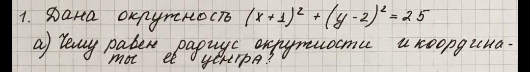 Ответ: радиус равен 5, координаты центра (-1; 2)
