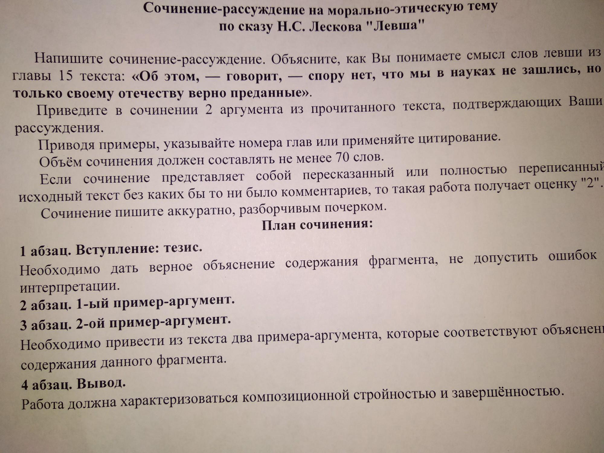 Крч в инете посмотри там напиши сочинение рассуждение про левшу и там выйдет я так искала