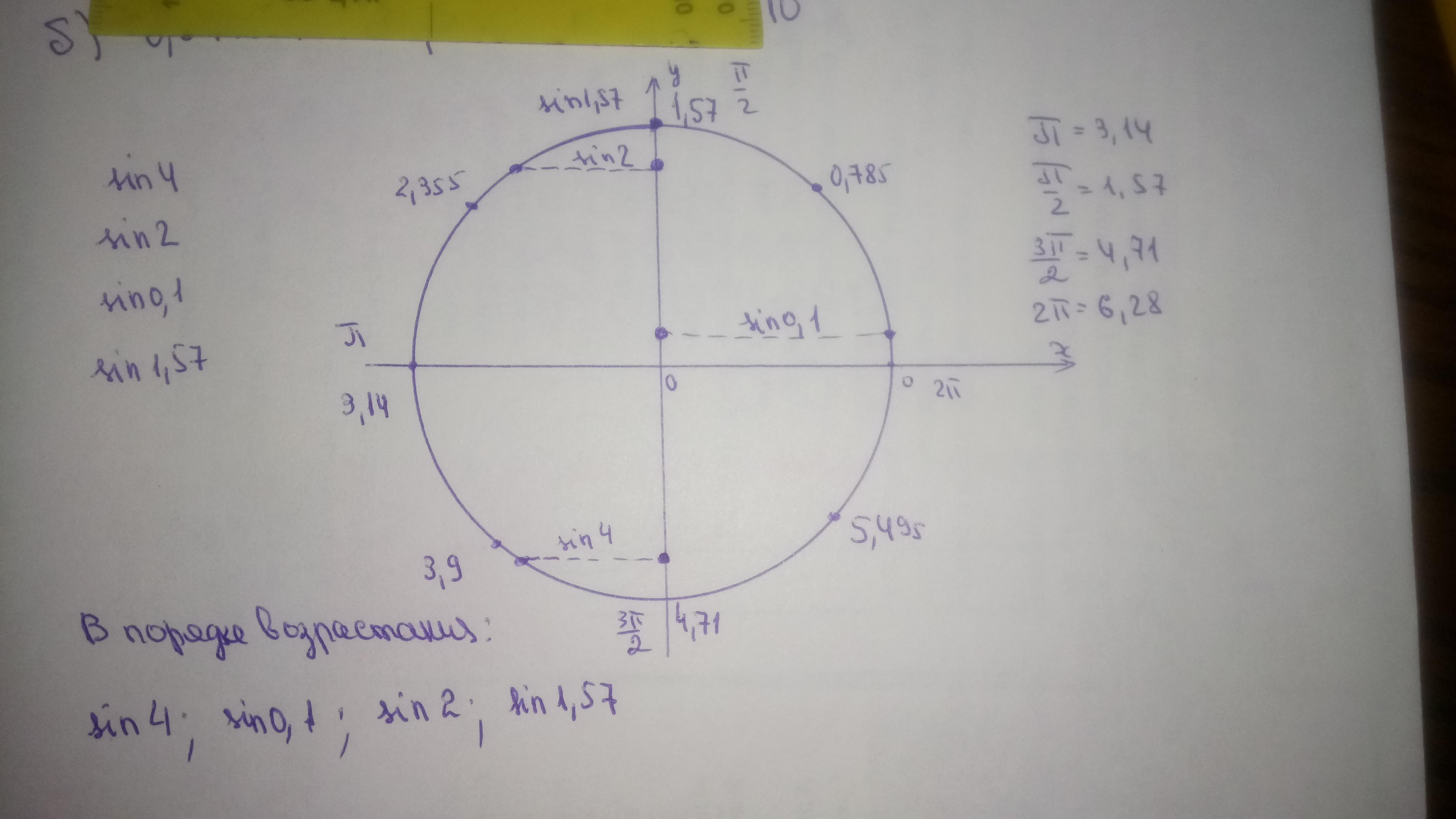 Расположить в порядке возврастания sin4 , sin2, sin 0,1 , sin 1,57 . И объясните как это выполнить . Помогииите !! На поооомоооощьььь!