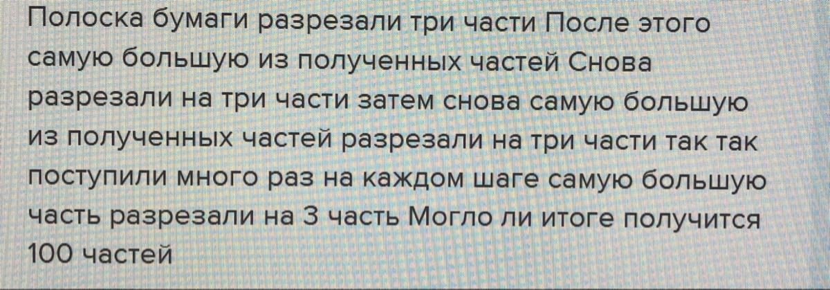 Когда мы режем большую часть на три части, у нас получается 2 обрезка и 1 длинная часть. Количество обрезков всегда четное, а вместе с длинной частью мы будет иметь нечетное количество частей.