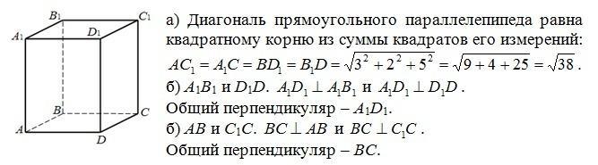 Дан прямоугольный параллелепипед abcd a1b1c1d1.н найдите диагональ параллелепипеда если его измерения таковы :4см, 5см, 7см,.Постройте общий перпендикуляр скрещивающихся прямых:ad и c1c