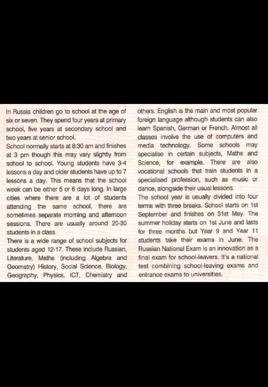 In Russia children go to school when they are six or seven. They study in one school eleven years.