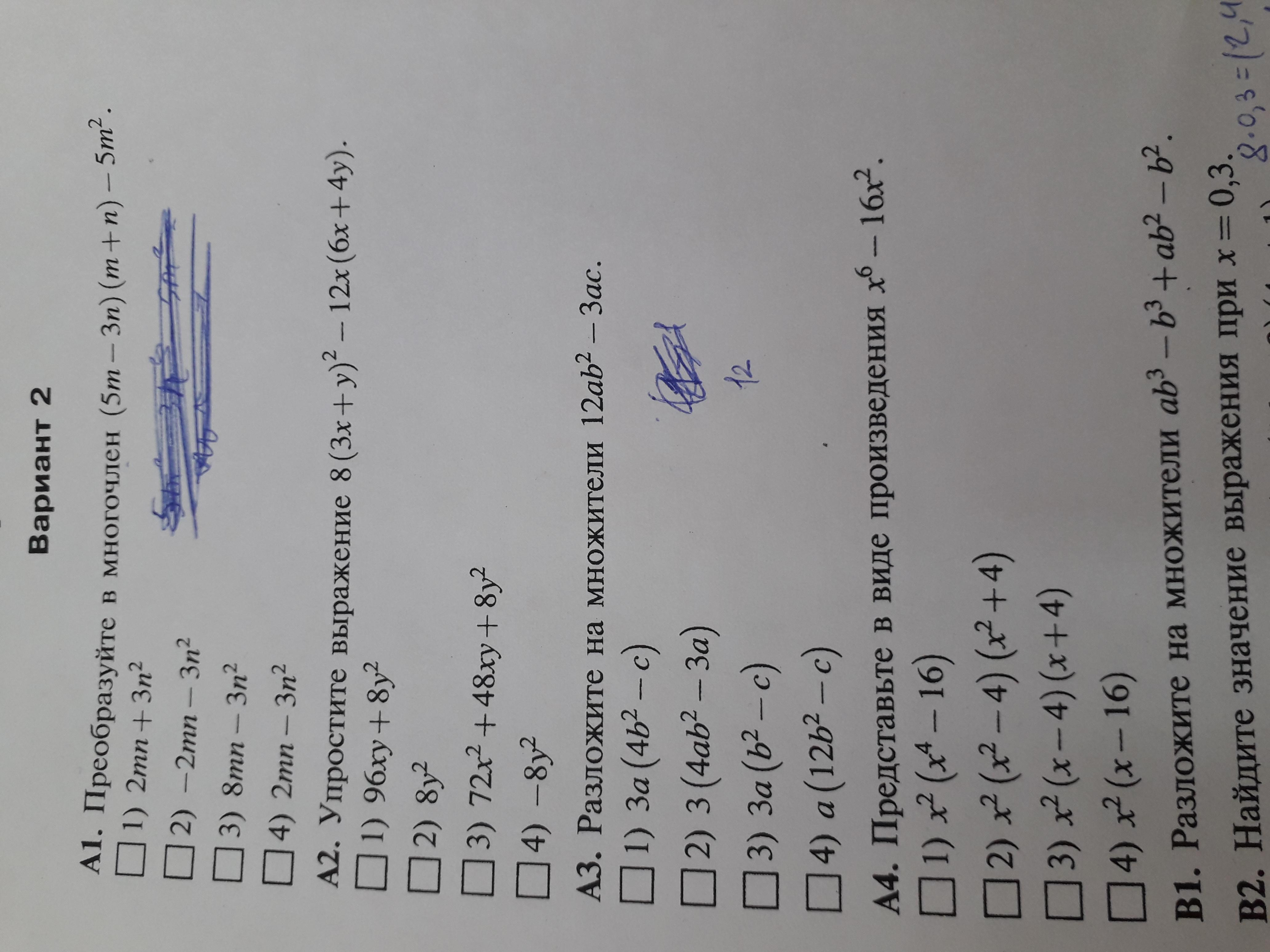 12ав² - 3ас = 3а(4в² - с) (ответ 1),