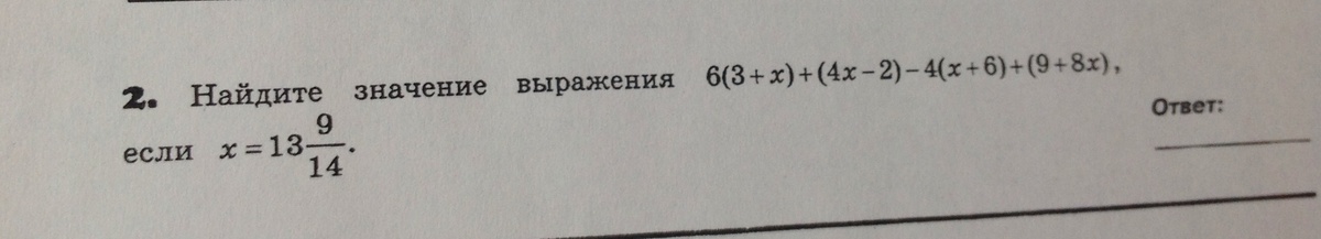 6(3+х)+ (4х-2)-4(х+6)+(9+8х)= 18+6х+4х-2-4х-24+9+8х=1+14х