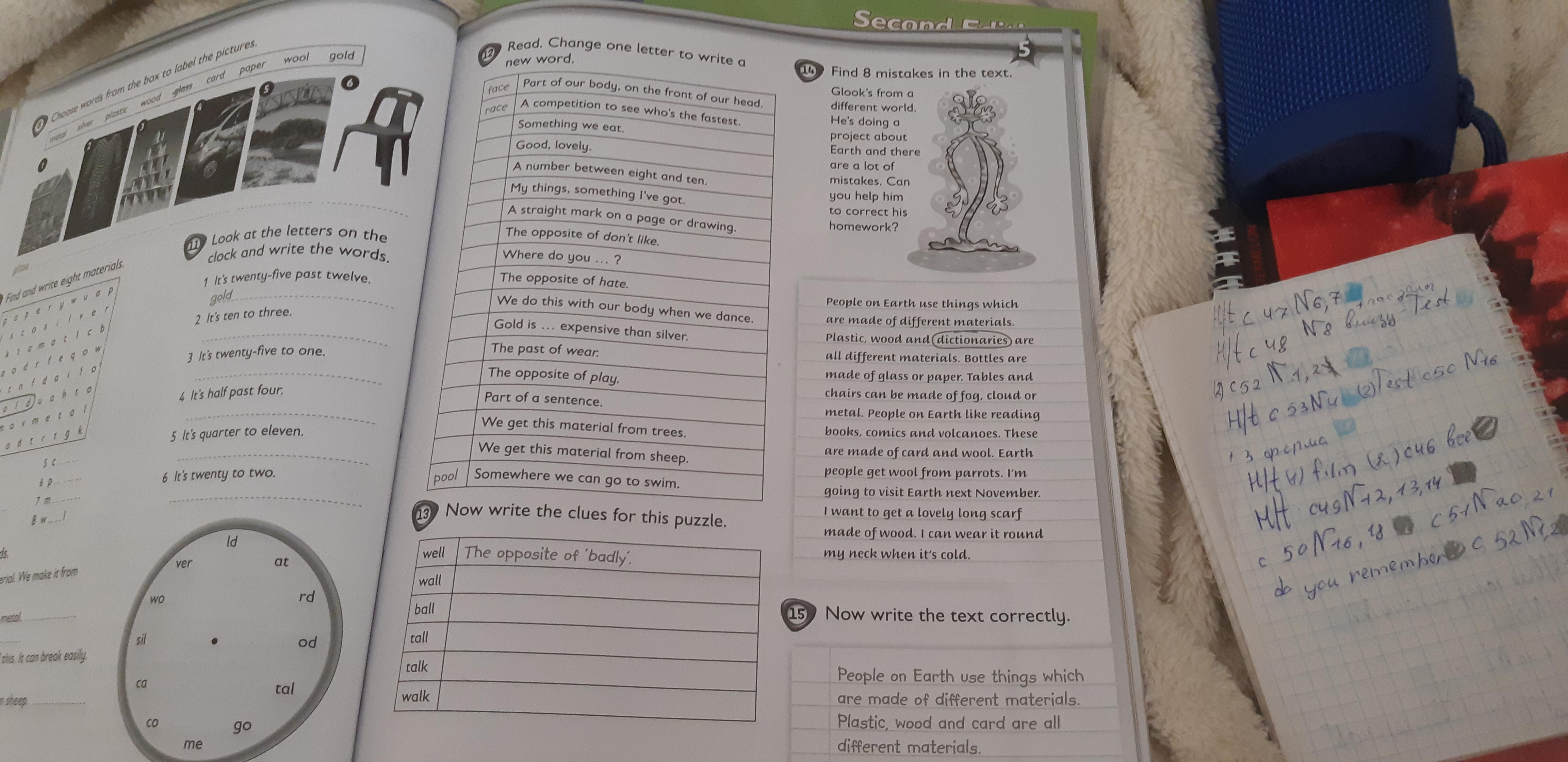 В 12 задании надо поменять одну букву что бы составить слово. Например что мы едим: rice надо поменять одну букву чтобы получилось другое слово.